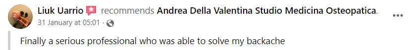 "Un professionista serio che ha saputo risolvere il mio mal di schiena."